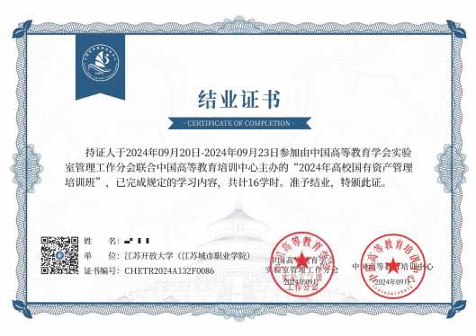 为进一步强化国有资产全生命周期管理,不断提升国有资产管理规范化、科学化、精细化、信息化水平,充分发挥国有资产使用效益, 9月20日至23日,中国高等教育学会在武汉举办2024年全国高校国有资产管理培训班。我校国有资产管理处两位老师报名参加了此次培训。